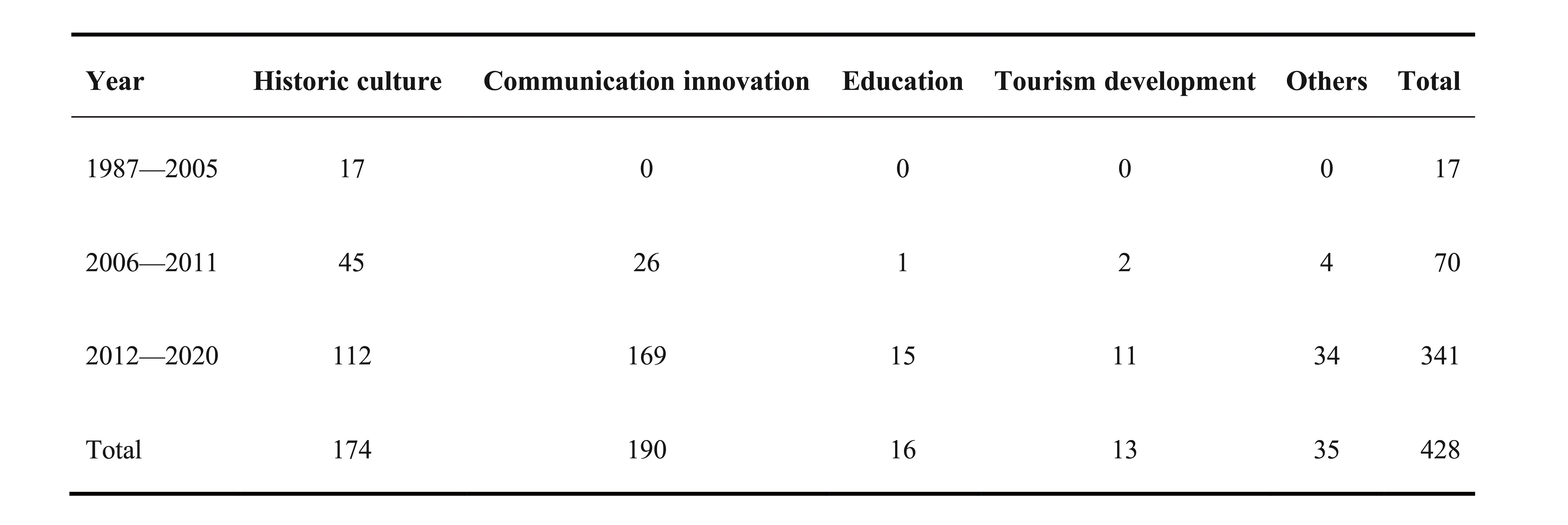 By 2020, 280 articles had been retrieved on CNKI.com under the title of “Miao Nationality Silver Jewelry,” and 428 on the theme of “Miao Nationality Silver jewelry,” including 62 master’s theses, 5 doctoral theses, 6 conference papers, 14 newspaper reports and 341 introduced in other journals. On the whole, before 2005 the first stage, the amount of literature was small at this time, and then the amount gradually increased. The period from 2006 to 2011 is the second stage. The literature during this stage accounts for 21%, the number of papers increased, and the quality of papers in this stage also improved. This has much to do with Miao silver jewelry entering the first batch of the National Intangible Cultural Heritage list in 2006. Among them, the studies of 2011 are the most striking. In this year, scholars mainly analyzed the types, shapes, craft, history and culture of Miao silver jewelry, and pointed out the outstanding artistic value and spiritual value of Miao silver jewelry. From 2012 to 2020 was the third stage, during which research on Miao silver jewelry entered a full stage, with a total of 320 papers, accounting for 75% of the total number. This stage is generally recognized as the “post-World heritage application era” in the academic world. It focuses on the inheritance and development of Miao silver jewelry innovation in modern times, and tries to accelerate the pace of national cultural revival on the basis of the continuous promotion of the national plan to revive traditional crafts. The number and annual distribution of articles related to “Miao Silver Jewelry” are shown in Table 1.