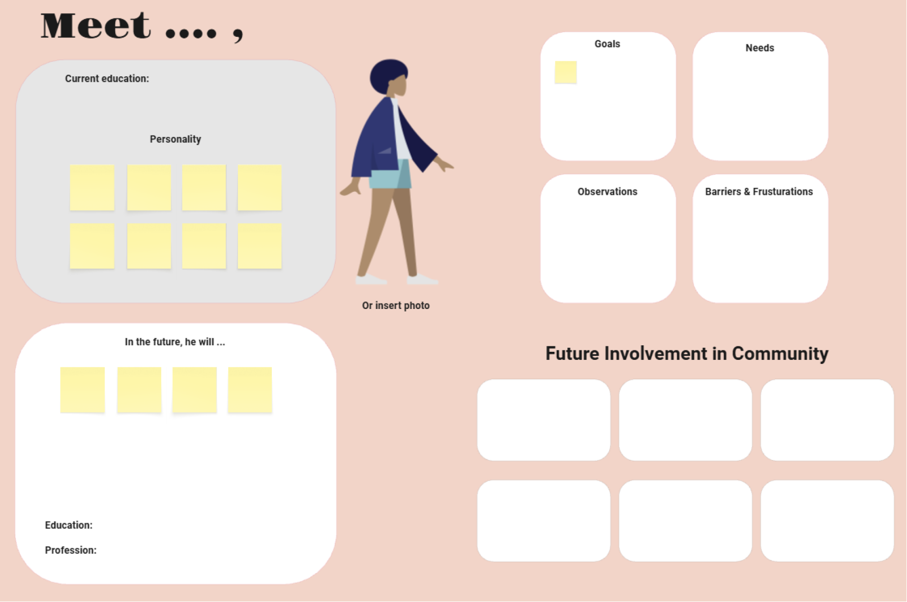 The Speculative Profile Mapping exercise included several structured columns designed to capture a holistic view of each participant. These columns recorded current educational status and observed personality traits. From workshop interactions and observations, the mapping also documented students’ stated goals in life, expressed needs, behavioral tendencies during activities, and perceived barriers or frustrations. Moving beyond these present-focused details, the exercise aimed to speculate about each teenager’s future by interpreting their conversations and interactions during the co-design sessions. This future-oriented section considered their likely individual paths, such as the projected highest level of education attained and potential professions, as well as anticipated forms of community involvement.