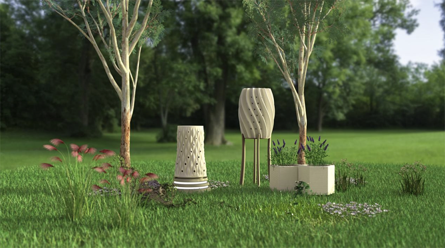 The nests are integrated with urban public facilities and horticultural products, utilizing 3D ceramic printing technology to create habitats that align with the natural behaviors of solitary bees and ensure strong ecological connectivity. These nests are designed to blend organically into the urban environment and human activities, with the goal of restoring solitary bee populations in cities.