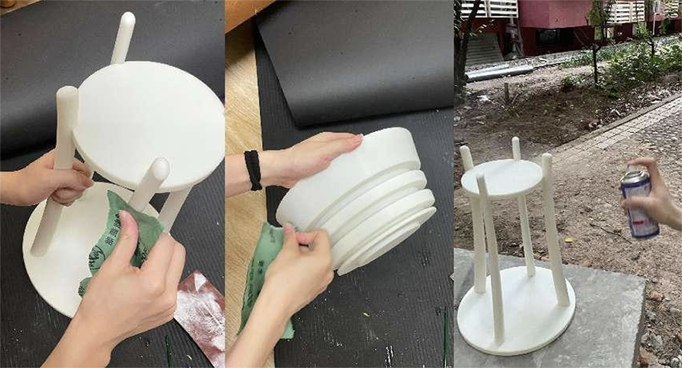 After 3D ceramic printing, the base size was adjusted according to the firing shrinkage. The base was fabricated using 3D plastic printing, followed by sanding and painting. Finally, the components were assembled, and LED strips were installed in the bee lamp (Figure 25).