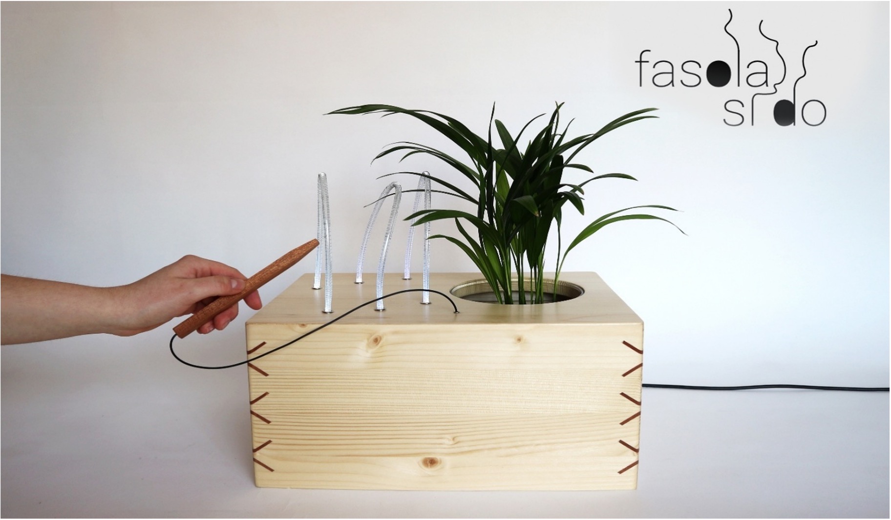 Another project that develops this assumption is Fasola Si Do by Marta Kluba [47]. It is an interactive plant pot with a function for generating music for plants (Figure 10). The author was inspired by the hypothesis that sound—perceived as a physical phenomenon transmitting various kinds of vibrations—may stimulate plant growth. The music is generated using a wire probe brought close to one of three loops made of resistance wire. This act, interpreted as an expression of tenderness and refined care for non-human beings, deepens the user's sense of interspecies connection and responsibility.