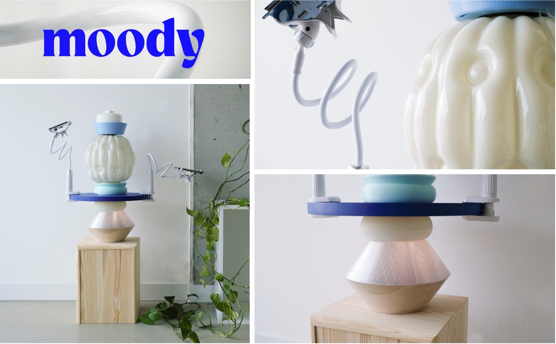 One example is Moody, created by Weronika Mikłusiak [39] under the academic supervision and with the programming support of the MDS research team (Figure 3). This hybrid furniture-totem is inspired by a simple children’s toy, where various components are stacked onto a centrally mounted axis. The aim is to provoke users to nostalgically explore sensorimotor and memory-based experiences through interactive sensory stimulation.