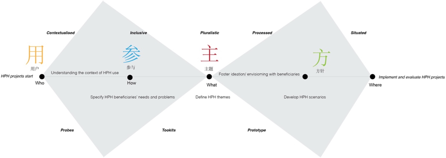 Notably, it considers the current Chinese HPH approach and their existing design cognition, contextualising these elements to facilitate a shift in understanding from the present situation to a preferred state.