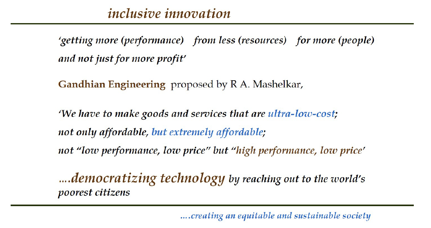 The Indian tradition of inclusive innovation provides compelling examples of how the seemingly contradictory goals of affordability, quality, and scale can be harmonized. This ethos is profoundly shaped by R.A. Mashelkar’s formulation of Gandhian engineering—the philosophy of “getting more from less for more [8].” This concept has served as the impetus for numerous initiatives aimed at democratizing access to essential goods and services, demonstrating that excellence is not an exclusive luxury (Figure 3).