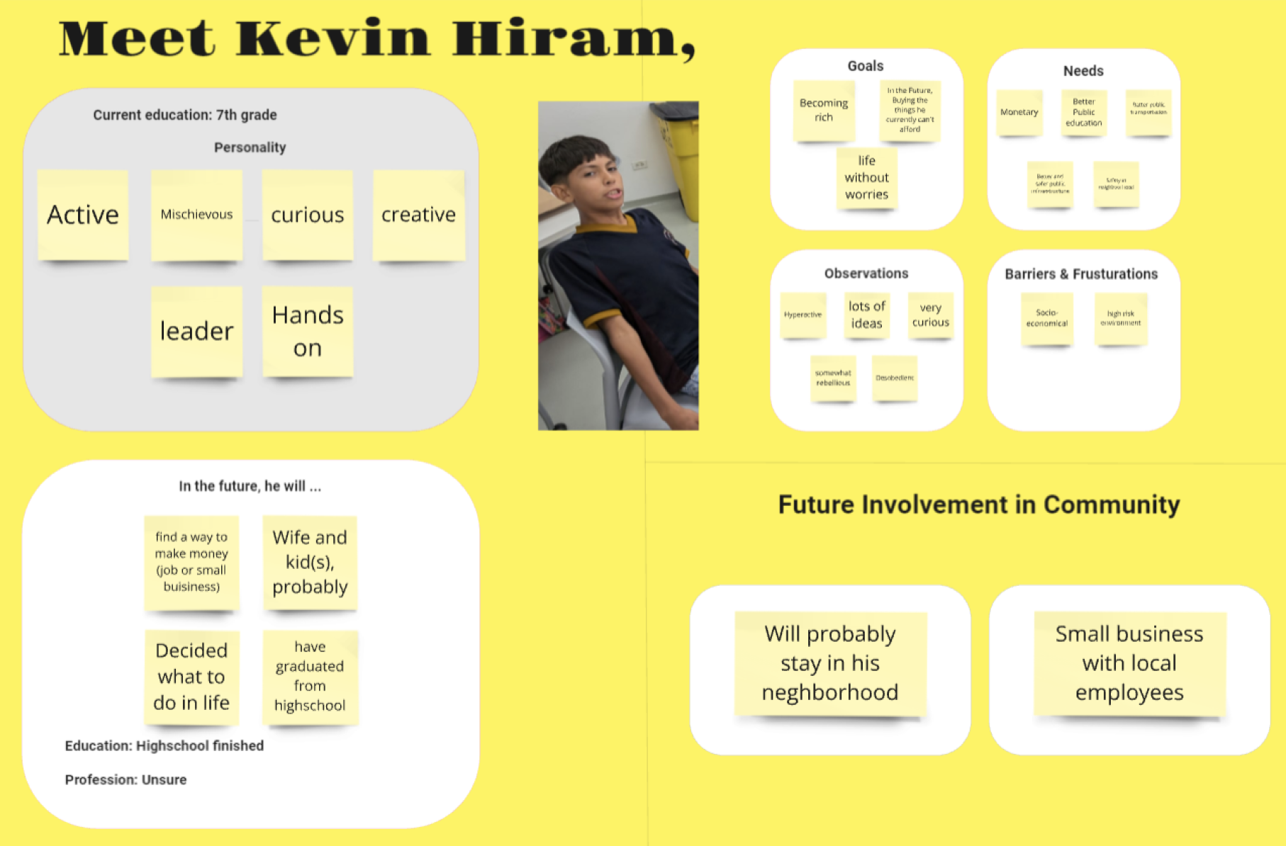 While limited in scale and shaped by subjective interpretations, the Speculative Profile Mapping exercise serves as an early step toward building a more nuanced understanding of the community’s youth. It offers a foundation for developing tailored, empathetic, and realistic strategies to support their involvement in local problem-solving efforts, paving the way for the next phase of this research: analyzing the Profile-Writing Exercise to further deepen these insights.