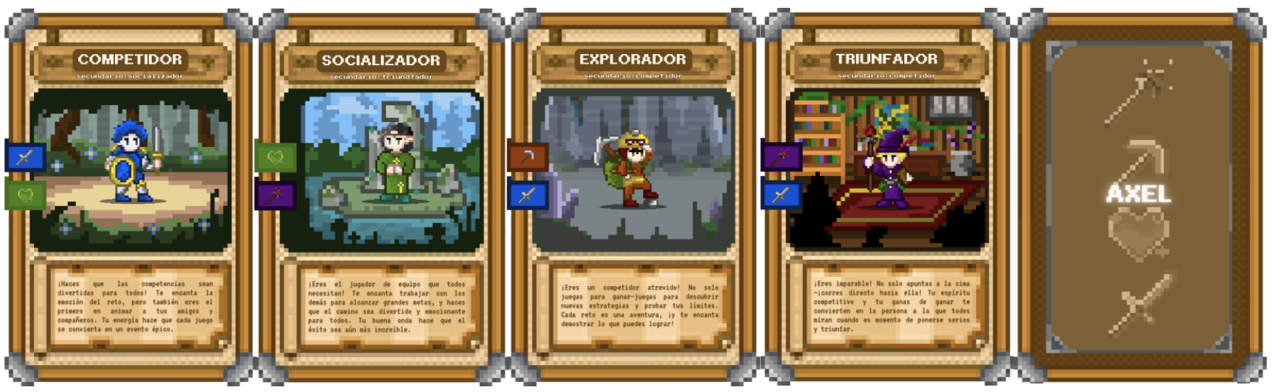 Data collection of the profiling-writing included 100-word written passages describing admired figures, categorization of gamer-like behavioral types (Explorer, Achiever, Socializer, Competitor), classroom observations, and participant reflections. Analysis involved multiple stages. Written passages were examined using thematic analysis alongside automated profiling tools. The Apply Magic Sauce API (University of Cambridge) provided open-text estimates of psychological gender, Big Five personality traits, Jungian personality types (MBTI), and leadership potential. While these outputs are indicative rather than precise, the Big Five and leadership dimensions were prioritized for interpretation. Additional analysis employed prompt-engineered large language models to extract motivational themes. Workshop profile data, partly gathered by Tecnológico de Monterrey university students, underwent iterative analysis to refine behavioral categorizations. Participants’ gamer-type mappings offered a framework for understanding motivational orientations.