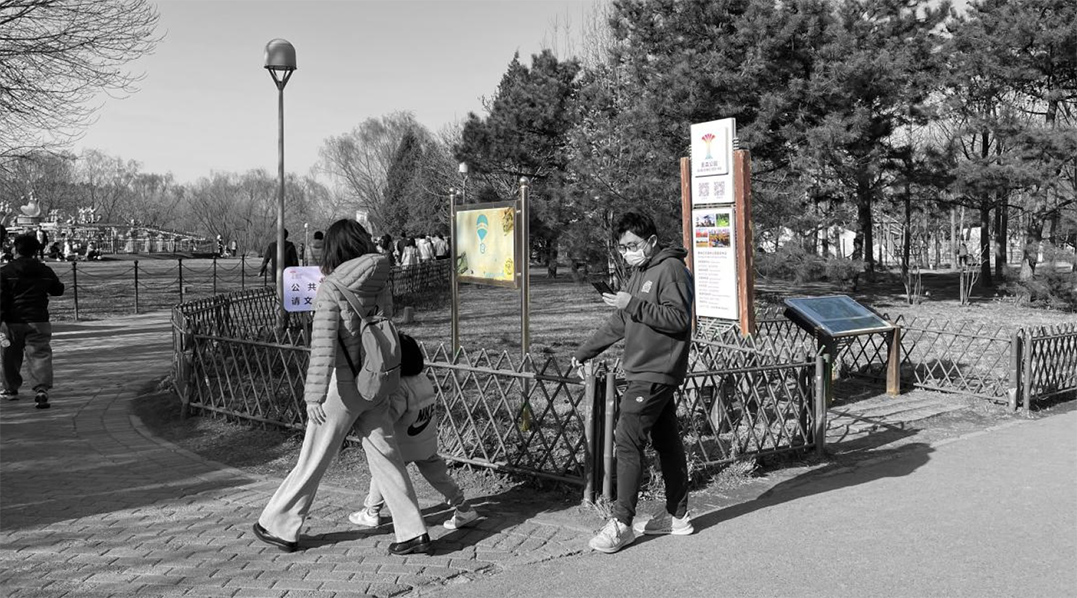 To investigate the current state and density of public facilities in urban parks, the author conducted a field survey and analysis at Beijing Olympic Forest Park (Figure 11). Observations revealed that the density of public facilities is very high; in some areas, four types of signboards with different visual languages appeared within three meters, creating significant visual clutter. Integrating bee nests with these public facilities, however, could leverage this density to help connect solitary bee habitats.
