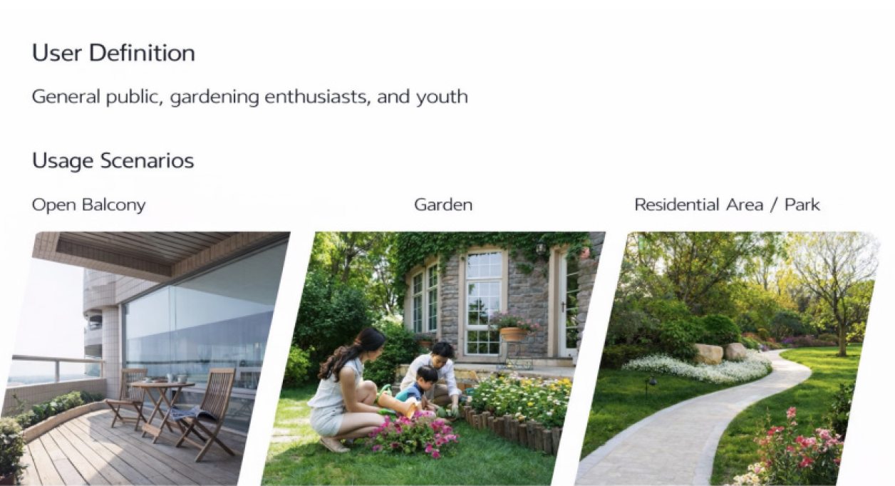 Intended use scenarios include parks, courtyards, and open balconies (Figure 15). Target users are the general public and gardening enthusiasts. Through these products, users can experience both gardening and beekeeping. Public facility-integrated nests increase urban bee populations, enhance urban biodiversity, and raise public awareness and engagement in biodiversity conservation.