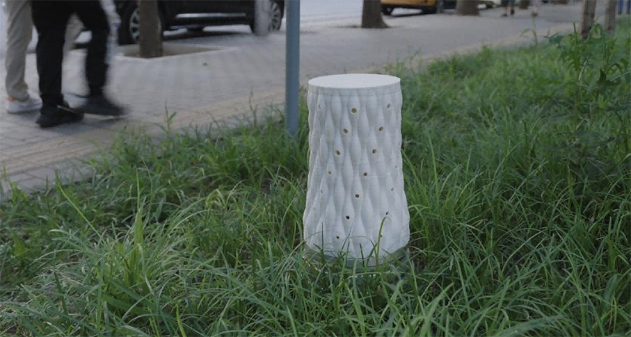 The nests are integrated with urban public facilities and horticultural products, utilizing 3D ceramic printing technology to create habitats that align with the natural behaviors of solitary bees and ensure strong ecological connectivity. These nests are designed to blend organically into the urban environment and human activities, with the goal of restoring solitary bee populations in cities.