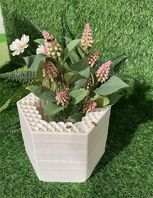 At present, 3D ceramic printing technology in China is still underdeveloped. Limitations in material performance and deformation of ceramic components remain key challenges that urgently need to be addressed in 3D ceramic forming processes [17]. In this study, white porcelain clay was selected as the primary material, which, after firing, produces a natural matte texture and a relatively pure base color. Due to the inherent properties of ceramic clay, the forming process is constrained, requiring repeated experimentation with the curvature and inclination of the beehive surfaces in order to achieve optimal results.